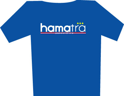 ハマトラのロゴがシンプルにデザインされあしらわれた、ゴール裏応援アイテム用のシャツ。