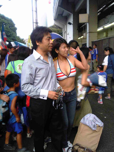 その女子の強みを活かす方法はないか?という問いに対する大胆な回答のひとつが、この「ゴール裏ブラジル計画」における、かりんちゃんのビキニ・オーウェン。