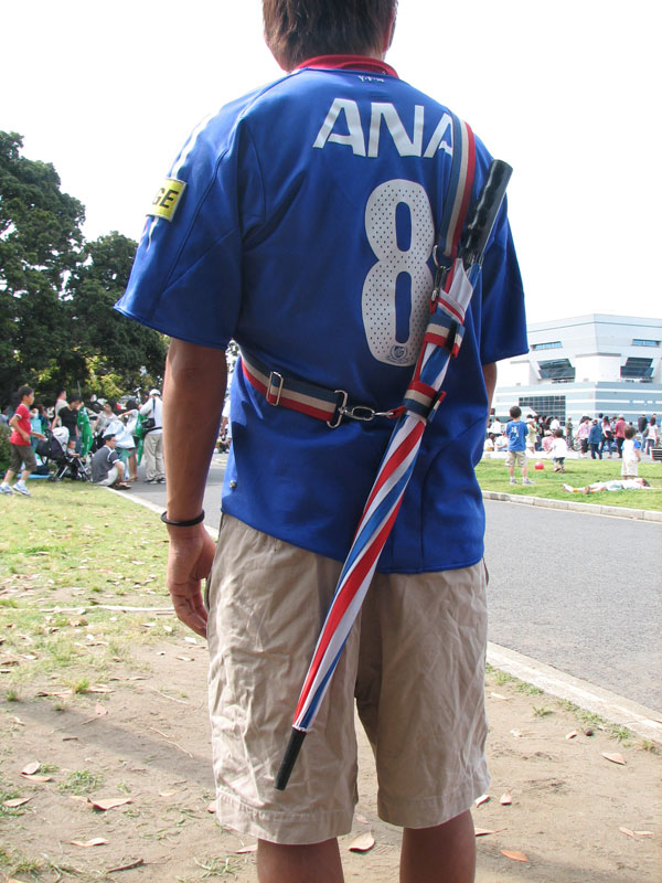 最初のうちは、オフィシャルでは「スタジアムでは傘は危険」ということで、ダメだったんだよね~。