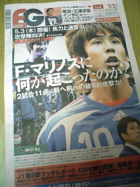 つか、えふしー戦の前に、2時間もオレさまにインタビューしたのにもかかわらず100字くらいにしか文章にしてくれなかったばかりか、えふしーの応援団長と思しい人間の間の抜けたインタビューと両並びというレイアウトにしてしまったデスク氏には、これまでの横浜に対する不当な評価のみならず、いろいろな意味でこれを機会に、自分自身のサッカー観・戦術観・指導者批評について、激しく反省を促したいところでもある。