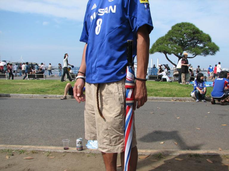 最初のうちは、オフィシャルでは「スタジアムでは傘は危険」ということで、ダメだったんだよね~。