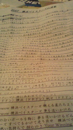 そのベイスターズの応援団が配布している歌詞カードをゲット!